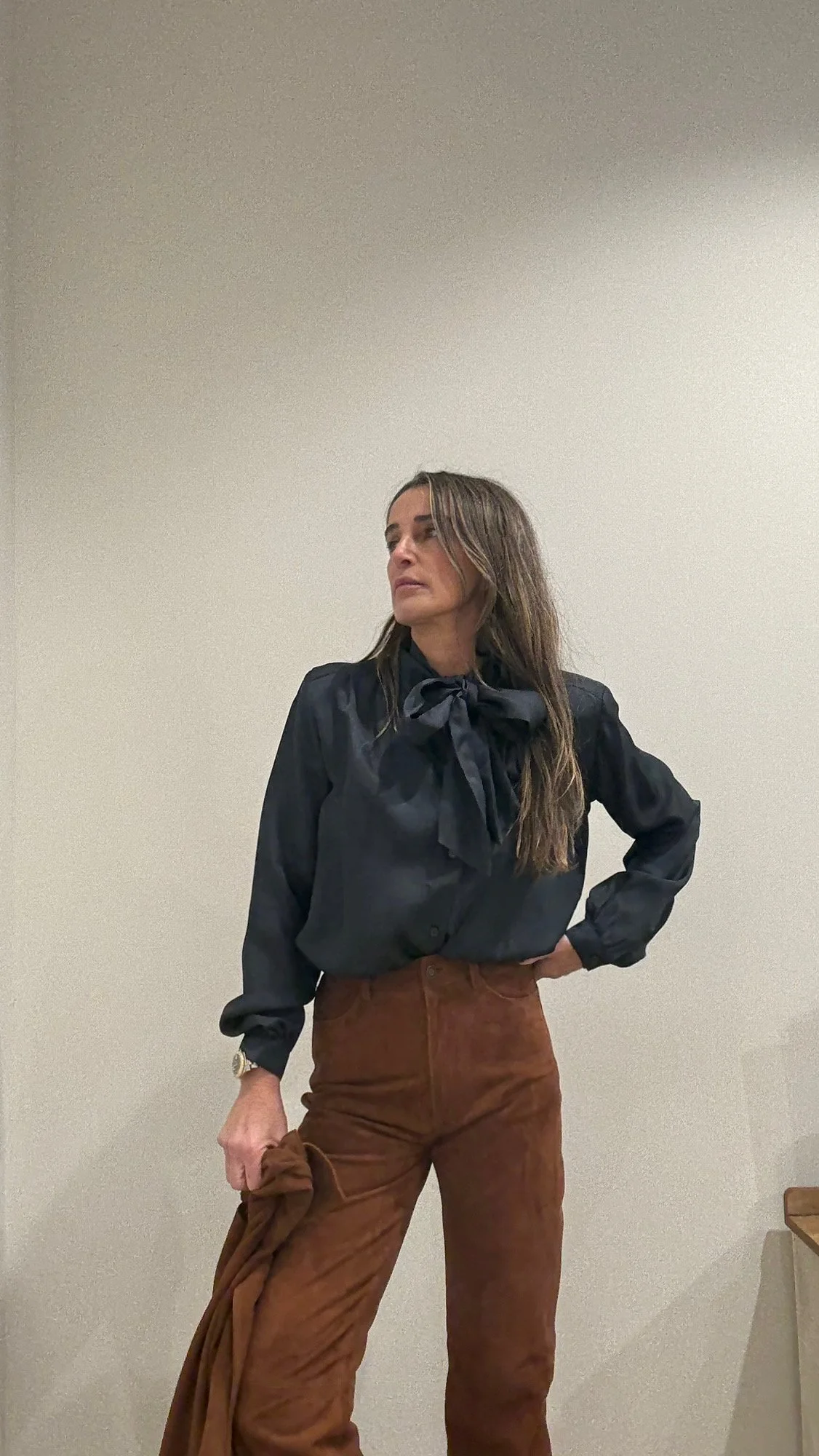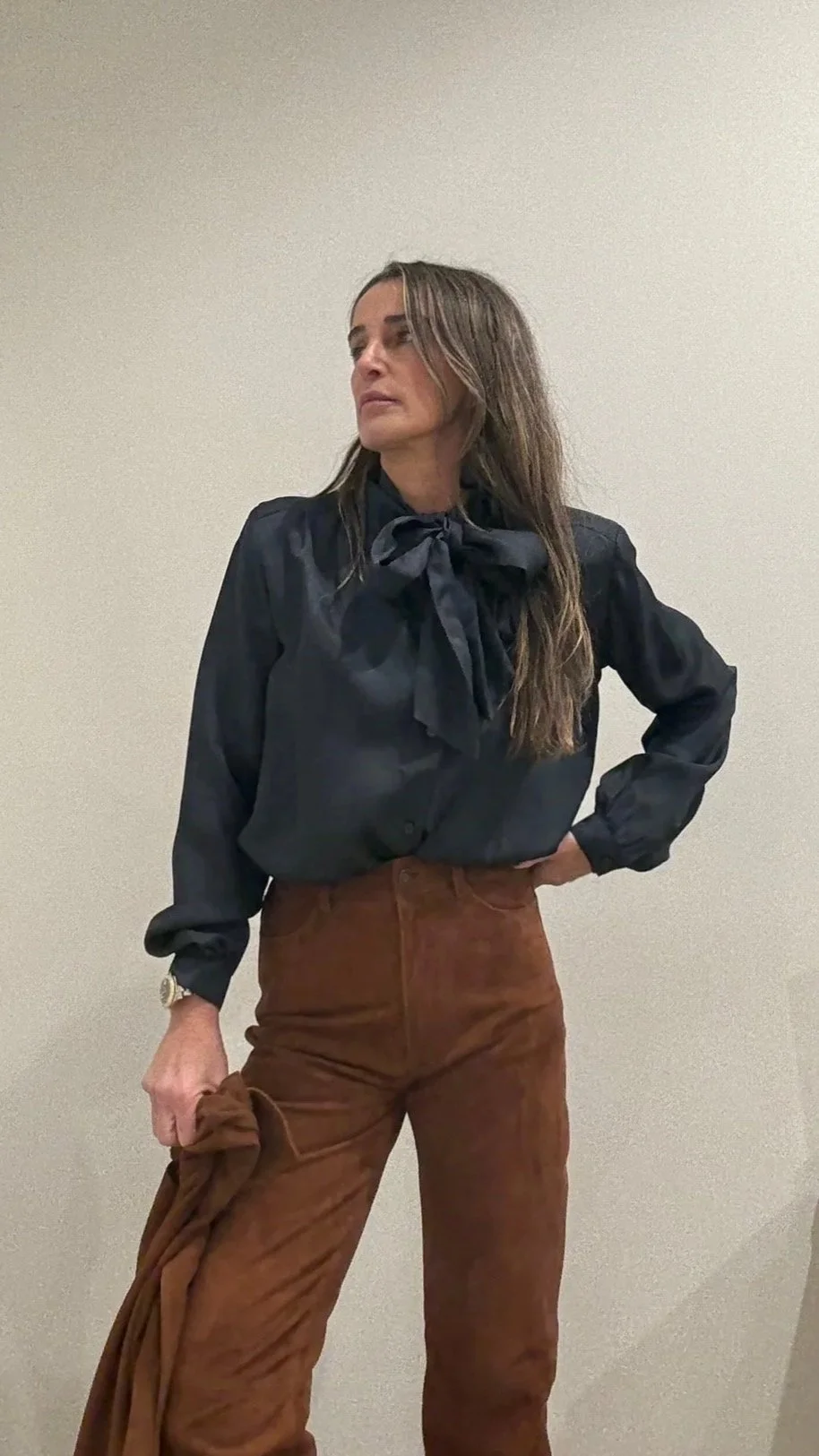 Detalles de encaje en el bajo, los puños, el cuello y las costuras de los hombros aportan un toque romántico y artesanal, mientras que un bordado elaborado en el centro delantero se convierte en el protagonista del diseño.