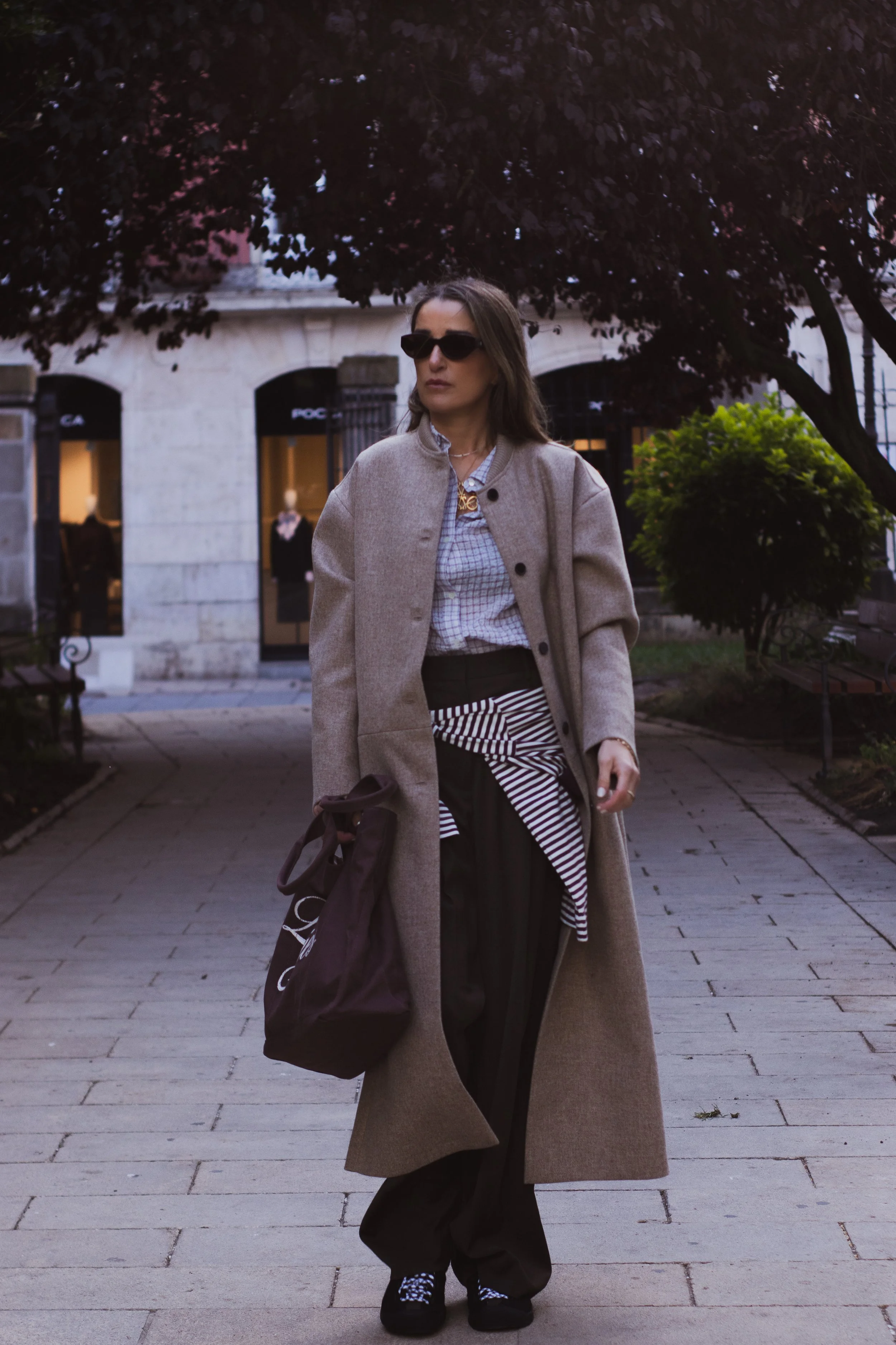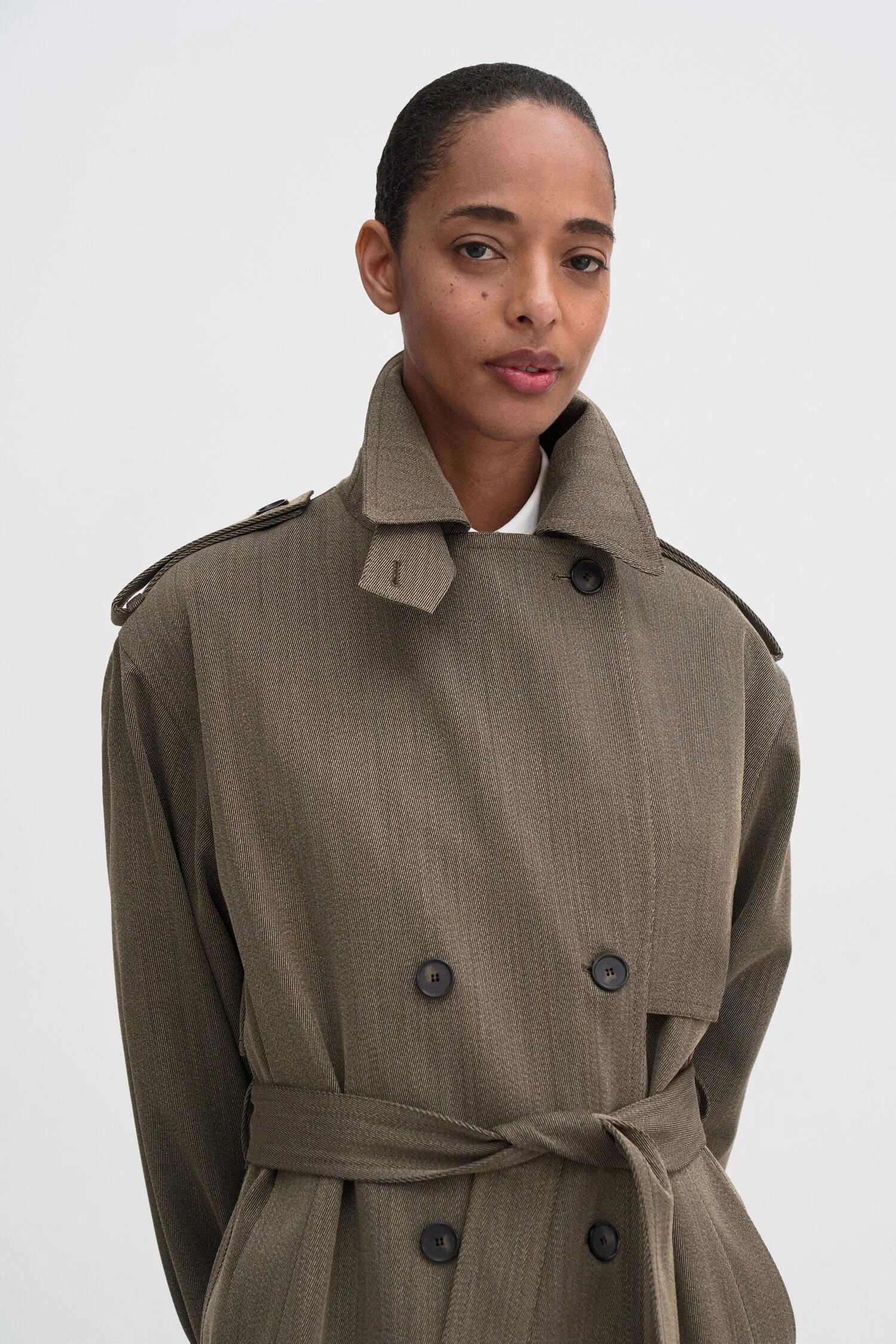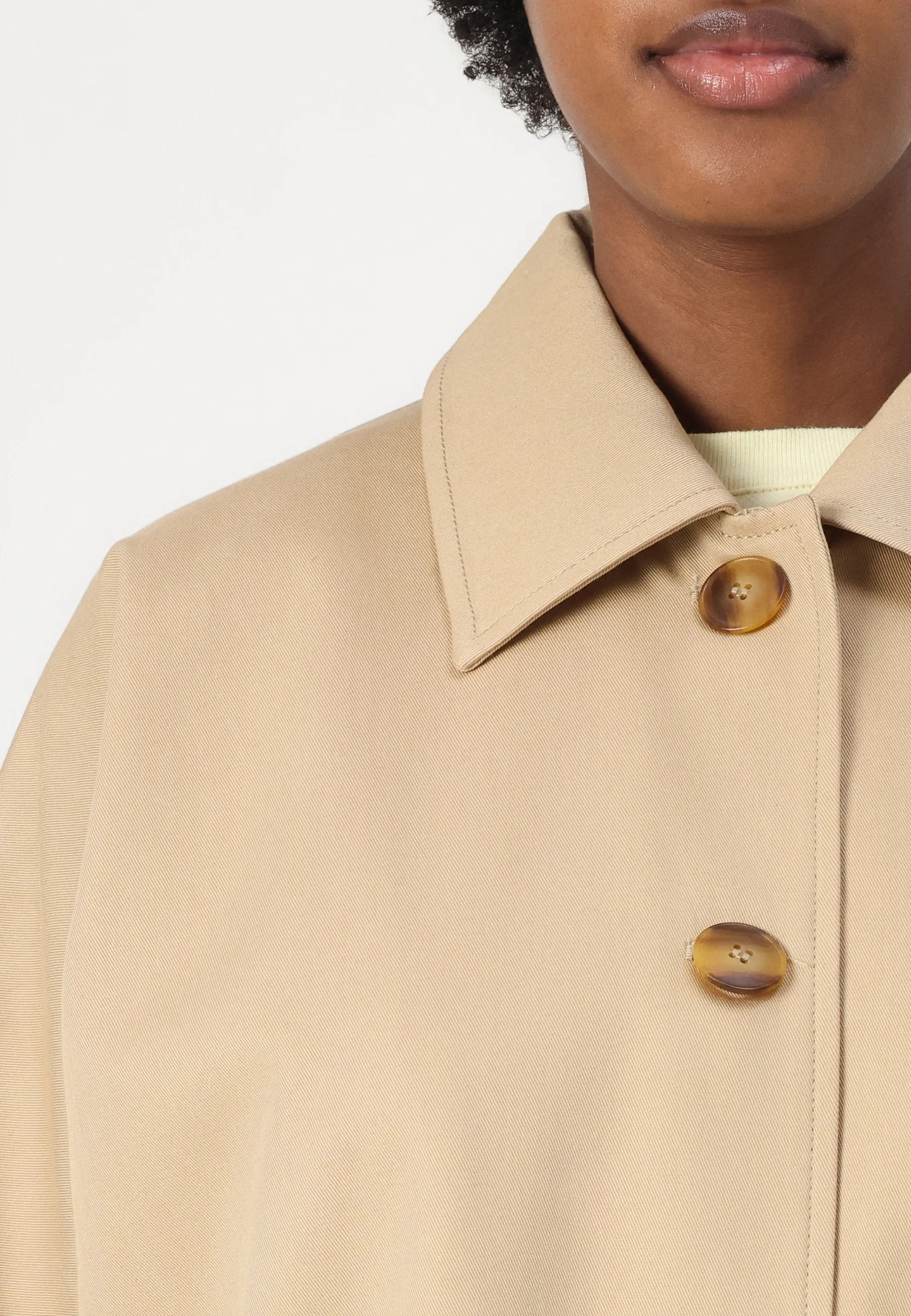 Este abrigo tiene un corte clásico con una silueta redondeada en los hombros. Está confeccionado en lana melton reciclada con una superficie cepillada. Elaborado a partir de una mezcla que incorpora materiales reutilizados de la producción de FILIPPA K.
