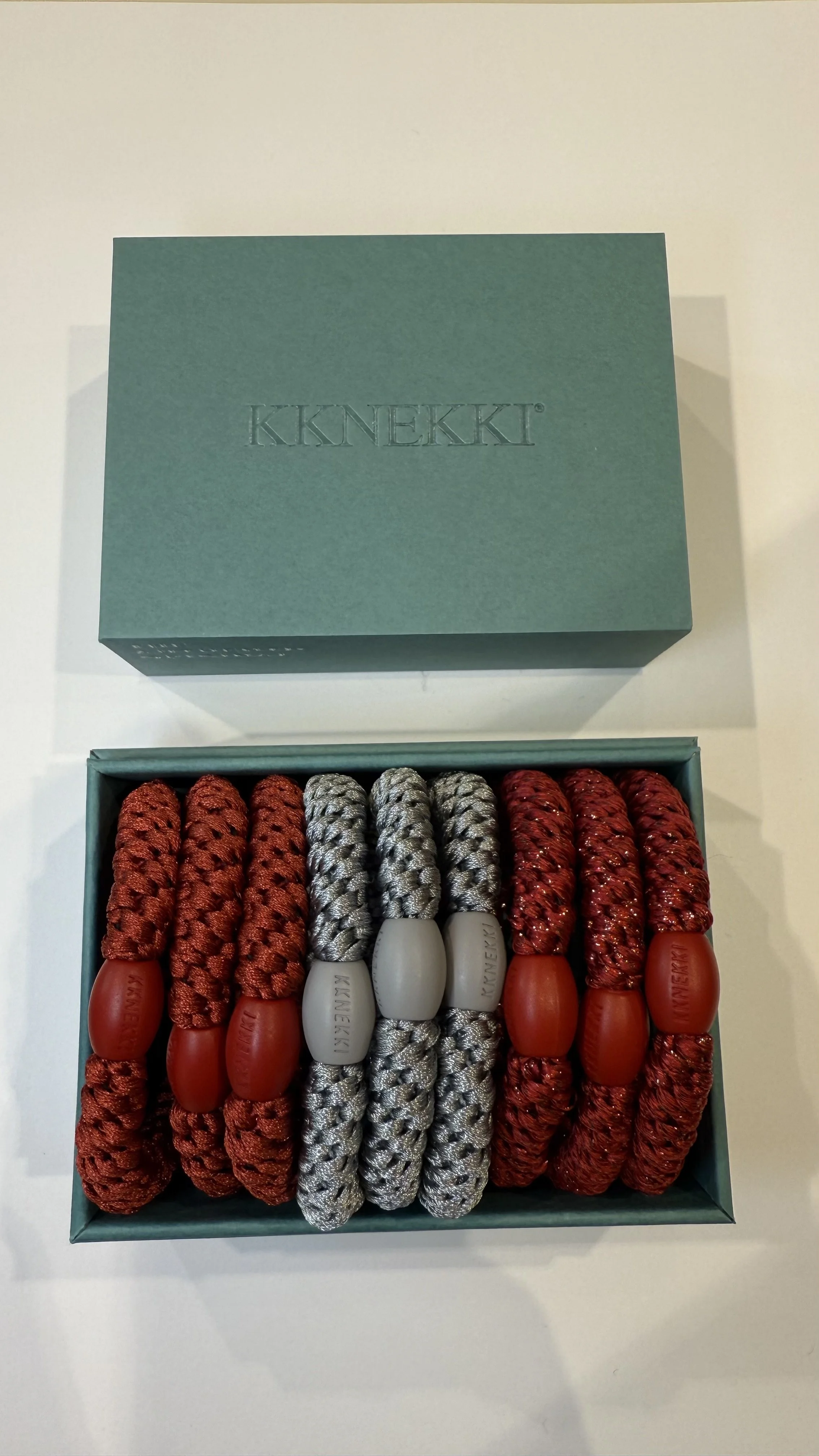 La caja de regalo está inspirada en la alegría de los macarons franceses, donde el empaque en sí es parte de la experiencia. Esta hermosa caja está diseñada para contener 10 de tus lazos favoritos de KKNEKKI, lo que te permite crear tu propia combinación de colores y estilos.