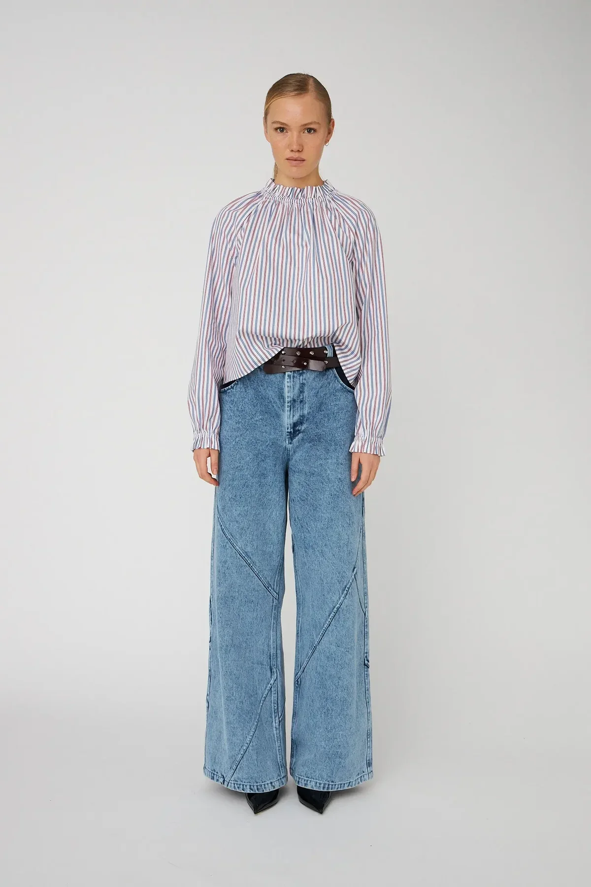 Camisa de algodón bordada con lazo removible.