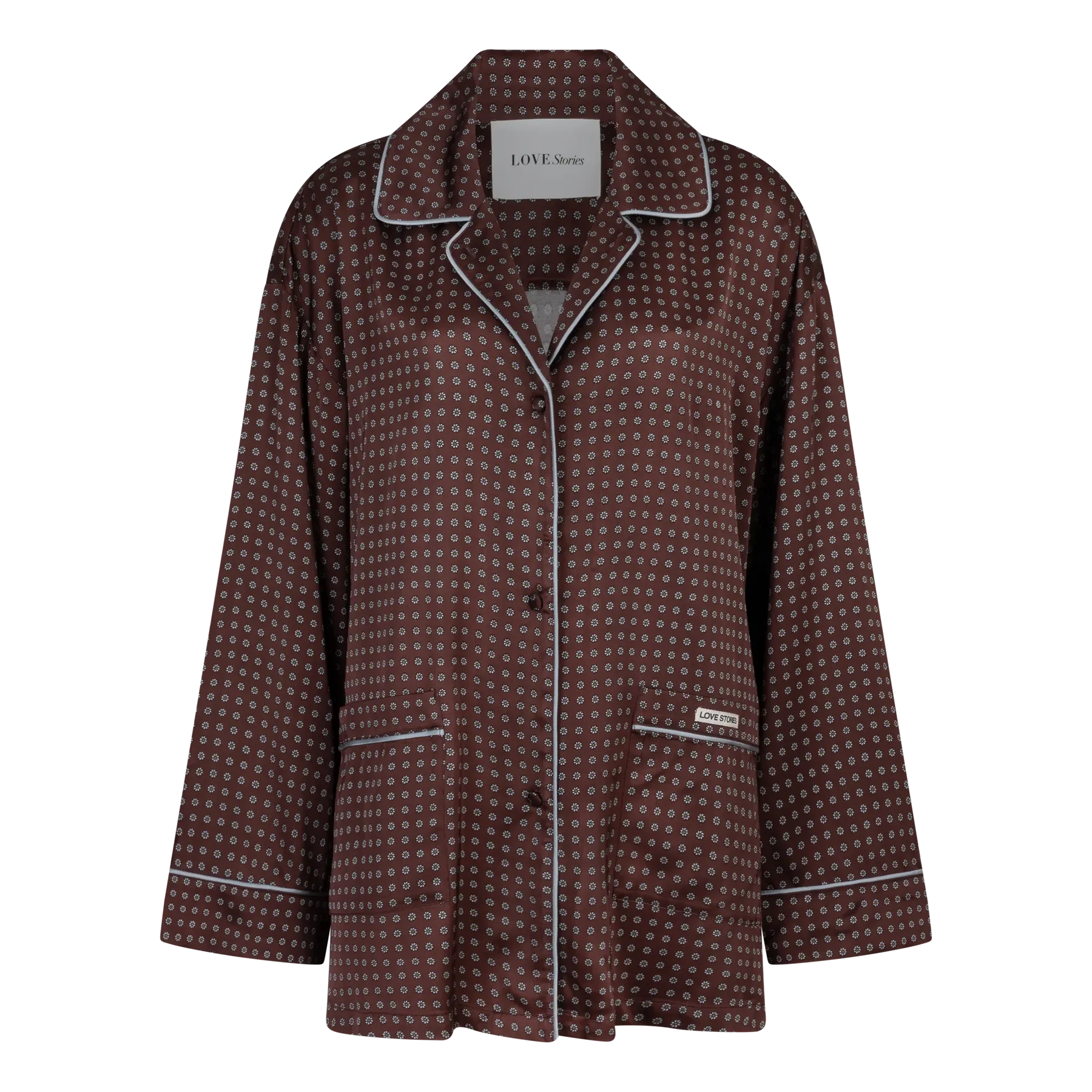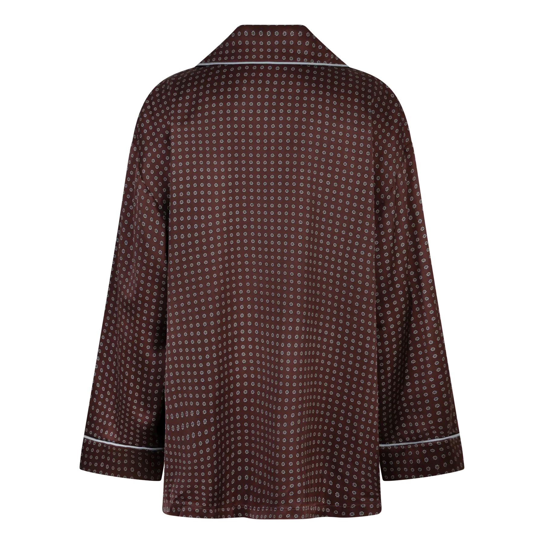 Blusa fluida con cuello lavallière. Manga larga acampanada con puño abotonado. Cierre discreto de botones en la parte delantera. Panel fruncido en la espalda.